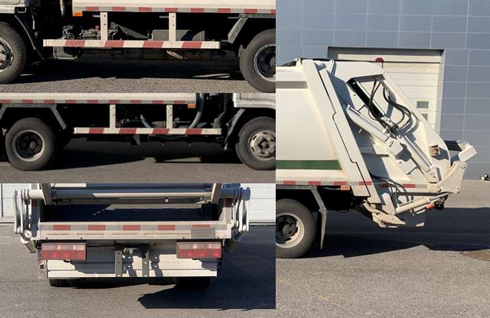 专用装置:垃圾箱,填装器;该车型主要用于垃圾转运;侧、后防护装置是由Q235A钢板加工而成,通过高强度螺栓与车体连接,侧防护采用横杆结构,左右对称,横杆截面高为80mm,离地高度为540mm,后下部防护装置由专用作业装置代替,离地高度为430mm;仅选用轴距(mm):3308,装后部翻桶或后部翻斗结构时后伸为330mm;发动机净功率(kW)值如下:D20TCIF1:88,YCY24140-60:99,CA4DB1-11E6:79,ZD30D16-6N:115,CY4BK461:92,CY4BK161:102,H20-120E60:87,CA4DB1-13E6:93,Q23-136E60:97;发动机D20TCIF1,YCY24140-60,CA4DB1-11E6,ZD30D16-6N,CY4BK461,CY4BK161,H20-120E60,CA4DB1-13E6对应油耗值为16.2L/100km, Q23-136E60对应油耗值为15.7 L/100km;ABS型号/厂家:ABS/ASR-12V-4S/4M/襄阳东风隆诚机械有限责任公司;该车型可选装直接供电式ETC车载装置. |