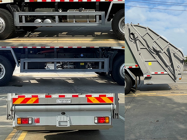 1.该车主要专用装置由箱体,压缩系统组成,用于垃圾的收集与清运;2.仅选用轴距:4350+1350(mm);选装箱体结构;选装后部工作装置;选装工作装置时外形长/后伸对应关系为(mm):翻桶装置:10670/380,密封斗装置,摆臂装置:10290/0,10580/290;3.随底盘选装文字标贴,选装驾驶室前面罩外观;4.侧,后防护均采用材料为Q235,侧防护连接方式为焊接加螺栓连接,后防护由专用装置替代,离地高度490mm;5.ABS型号及生产厂家:CM4XL-4S/4M;生产厂家为:广州瑞立科密汽车电子股份有限公司;6.发动机型号/油耗值(L/100km)对应关系:WP8.350E62/31.62,YCS06270-60/32.06;7.该车型可选装直接供电的ETC车载装置.8.安装具有卫星定位功能的行驶记录仪. |