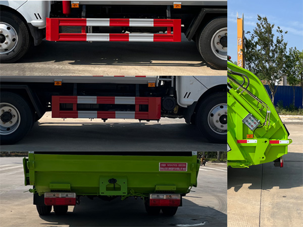 | 1.专用功能及装置:挂桶机构和箱体,主要用于垃圾的收集和转运;整备质量包含:三角垫木,随车工具.货厢重量为1710kg,底板厚度为4mm,顶板、侧板厚度均为:3mm,材质均为Q235.2.选装箱体结构,选装不带密封盖,选装后部挂桶上料机构,外形长/前悬/轴距/后悬/后伸对应关系为(mm):5995/1180/3000/1815/0,5840/1180/3000/1660/0,5795/1180/2800/1815/0,5715/1180/2800/1735/0,5995/1180/2800/1735/280,侧防护材料为Q235,螺栓连接;后防护由专用装置替代,下边缘离地高380mm;3.,ABS厂家及型号:襄阳东风隆诚机械有限责任公司/ABS/ASR-12V-4S/4M;发动机与油耗值(L/100km)的对应关系为:Q23-132E60/11.2,该车型可选装直接供电ETC车载装置.仅选用2800mm、3000mm轴距.可选装后部不带示廓灯.选装箱体样式. |
