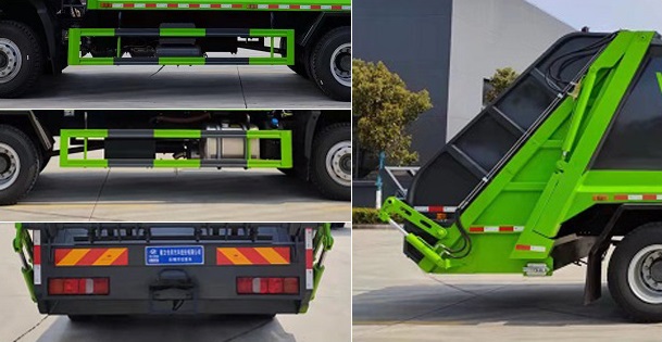 该车主要专用装置:液压机构和填塞器,主要用于城镇环卫垃圾的收集与运输.侧面防护材料:Q235A碳钢.连接方式:左右侧面采用螺栓连接.后部防护由专用装置替代,离地高度为(mm):500.ABS型号:446 004 6300;ABS生产企业:采埃孚商用车系统(青岛)有限公司.发动机及油耗值(L/100Km)对应关系为为:MC07H.33-60/25.93,MC07.29-60/26.31,MC07.25-60/26.31,WP6H270E61/26.47,WP6H245E61/26.47,WP4.6NQ220E61/26.73,MC07.27-60/26.31,WP7.300E61/25.94,MC07.31-60/26.31.该车可选装直接供电方式的ETC车载装置.该车安装带有卫星定位功能的行驶记录仪.选装限速装置,限速装置限速(km/h):79或89.该车为翻桶装置样式,选装翻桶装置加装全密封盖样式,选装摆臂装置.选装不同工作装置时整车长/前悬/轴距/后悬/后伸对应关系为(mm):①翻桶装置:9250/1550/4700/2600/400,9050/1550/4500/2600/400,②摆臂装置:9050/1550/4700/2600/200,8850/1550/4500/2600/200.随底盘选装驾驶室,选装车道偏离报警和车辆前向碰撞预警系统,选装四方位影像系统,可不选装遮阳罩,选装保险杠外观,选装高位保险杠,选装踏步,选装前拖钩,选装油浴式空滤器,选装昼间行驶灯,选装前面罩,选装踏步和侧翼子板配色,选装A柱护罩配色,选装消声器,选装右置油箱,选装左置电瓶箱.选装大油箱. |