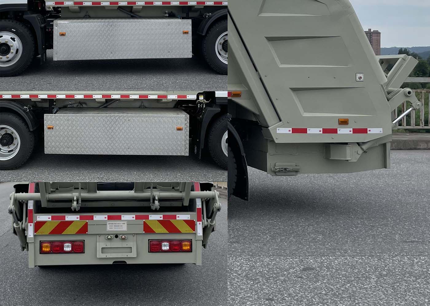 | 该车选用底盘3800mm轴距.1.该车通过垃圾箱,上料机构,填装器,液压系统,电气控制系统,达到垃圾收集装填,转运的作业功能;2.该车有3种配置:A(翻桶型),B(翻盖翻桶型),C(翻斗型).配置A,B时,后悬 2070mm,后伸 390 mm,整车长度为 7455mm;配置C时,后悬2070mm,后伸200mm,整车长度为 7265 mm;3.侧防护材质为铝合金,连接方式螺栓连接;4.后防护由专用装置代替,离地高度为480mm;5.储能装置种类/单体生产企业/总成生产企业:磷酸铁锂蓄电池/宁德时代新能源科技股份有限公司/宁德时代新能源科技股份有限公司,磷酸铁锂蓄电池/中创新航科技股份有限公司/中创新航科技股份有限公司;6.驱动电机类型为永磁同步电机,型号为TZ365XSC12,额定功率为105kw,峰值功率为160kw;7.ABS系统型号:CM4XL-4S/4M,生产企业:广州瑞立科密汽车电子股份有限公司;8.该车型可选装直接供电式ETC车载装置;9.该车装备具有卫星定位功能的行驶记录仪;10.随底盘选装驾驶室前面罩外观、驾驶室前部贴字外观、驾驶室外部图案、前挡风玻璃外观、全密封斗选装、气动遮盖选装。 |