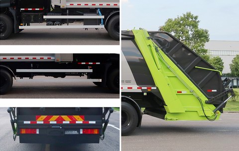 该车选用底盘5000+1350mm轴距,该车通过垃圾箱,上料机构,填装器,液压系统,电气控制系统,达到垃圾收集装填,转运的作业功能;该车有6种配置:A(基本型),B(翻桶型),C(提斗型),D(翻斗型),E(翻铁桶提斗型),F(翻盖翻桶型).配置A时,整备质量16650kg,额定载质量8155kg(3人),额定载质量8220kg(2人);配置B时,整备质量16800kg,额定载质量8005kg(3人),额定载质量8070kg(2人);配置C、D、E、F时,整备质量16950kg,额定载质量7855kg(3人),额定载质量7920kg(2人).配置A、C、D时,后悬3495mm,整车长度为11325mm;配置B时,后悬3495mm,后伸395mm,整车长度为11720mm;配置E时,后悬3495mm,后伸318mm,整车长度为11643mm;配置F时,后悬3460mm,后伸238mm,整车长度为11528mm;该车可选装垃圾箱密封门,后上部摄像头,上装前部小箱体外观,右侧铭牌位置外观,后部侧面无急停按钮,清洗系统,后上部外观,翻铁桶装置无填装器盖;侧面防护装置材料为铝合金,连接方式为螺栓连接;后防护由工作装置代替,离地高度为480mm;电池种类/储能装置单体及总成生产企业:磷酸铁锂电池/宁德时代新能源科技股份有限公司;驱动电机类型为永磁同步电机,型号为TZ460XS-LKM1901,生产企业为苏州绿控传动科技股份有限公司,额定功率为164kw,峰值功率为308kw;随底盘装有ABS,ABS型号/生产企业:J ABS/焦作博瑞克控制技术有限公司;该车型可选装直接供电式ETC车载装置;该车安装具有卫星定位功能的行驶记录仪. |