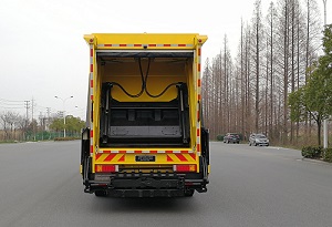1."ABS"型号/生产厂家:3631010-C2000/东科克诺尔商用车制动系统(十堰)有限公司,ABS 8/东科克诺尔商用车制动系统(十堰)有限公司, 4460046450/采埃孚商用车系统(青岛)有限公司;2.侧面防护装置的横杆材料为铝合金,螺栓连接;后部作业装置代替后防护装置,离地高度为460mm;3.车辆后部安装提料机构时,后悬2870mm,对应整车长度10050mm;车辆后部安装提料斗时,后悬3010mm,对应整车长度10190mm;4.车辆后部可选装车与车对接装置;5.可选用的发动机型号和对应的油耗值分别为:D6.7NS6B290/32.0(L/100km);DDi75E350-60/31.7(L/100km);DDi75E300-60/31.7(L/100km);DDi75E340-60/28.7(L/100km);D6.7NS6B320/30.2(L/100km);6.仅采用4350mm+1350mm轴距;7.随底盘可选装各种驾驶室外观、后处理器的型式、储气筒的位置分布及车辆尾部的组合灯具、选装ETC车载装置;8.车辆中部可选装不带双动力的装置,也可选装双动力装置的安装位置.外廓尺寸无变化,整备质量变化小于3%;9.可选装备胎、污水箱的安装分布位置;10.车辆后部选装称重系统,整备质量变化小于3%;11.该车由垃圾箱、压缩机构和推料机构等组成,主要作用是将垃圾收集后进行压缩处理和转运; |