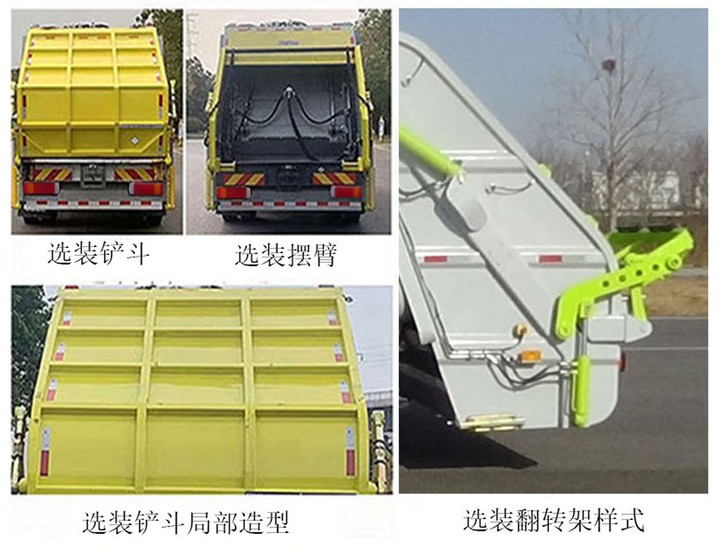 | 1.ABS型号/生产厂家: CM4XL -4S/4M/广州瑞立科密汽车电子股份有限公司; 2.该车选用底盘4500mm轴距;装翻桶装置,长9120mm,后悬2800mm,后伸320mm,整备质量11280kg;选装铲斗装置时,长9010mm,后悬2760mm,后伸250mm,整备质量11670kg;选装摆臂时,长8850mm,后悬2785mm,后伸65mm,整备质量11490kg,选装翻桶装置无填塞器盖板;3.侧后防护情况:侧防护装置材质为Q235B,连接方式为螺栓连接.后防护为专用装置替代,离地高度为460mm;4.动力蓄电池种类:磷酸铁锂电池,储能装置单体电池型号/总成型号/生产企业:CB230/L228H02/宁德时代新能源科技股份有限公司; 5.驱动电机型号/生产企业/类型/额定功率/峰值功率:EK1001300PMS1/凯博易控车辆科技(苏州)股份有限公司/永磁同步电机/100kw/185kW;6.专用功能及装置:该车专用装置有垃圾箱、填装器等,用于垃圾的收集、转运等工作;7.安装具有卫星定位功能的行驶记录仪;8.选装前围面罩样式 |