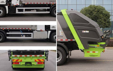 | 该车选用底盘5400mm轴距,该车通过垃圾箱,填装机构装置,达到垃圾收集装填及推挤卸料的作业功能;该车有3种配置:A(选装翻桶型),B(选装翻斗型),C(选装翻盖翻桶型).配置A、C时,整备质量11940kg,额定载质量5930kg;配置B时,整备质量12040kg,额定载质量5830kg;配置A时,整车长9865mm,后悬2725mm,后伸370mm;配置B时,整车长9815mm,后悬2775mm,后伸270mm;配置C时,整车长9565mm,后悬2725mm,后伸70mm;该车可选装翻桶装置(240L+660L)、(240L),上装前顶部无吊耳外观,后上料板凸轮机构外观,上装前部小箱体外面,上料机构摇臂外观,后部侧面无急停按钮,后填装器下部外观,左侧开关外观;侧防护装置材料为铝合金,连接方式为螺栓连接;后防护装置由车身结构替代,离地高度为460mm;燃料电池类型/生产企业:质子交换膜燃料电池/博世氢动力系统(重庆)有限公司,储能装置单体种类:锰酸锂动力蓄电池,单体/总成生产企业:天津荣盛盟固利新能源科技有限公司;驱动电机类型为永磁同步电机,型号为TZ365XSC11,电机峰值功率为170kW,额定功率115kW;随底盘装有ABS,ABS及控制器型号:CM4XL-4S/4M,生产企业:广州瑞立科密汽车电子股份有限公司;该车安装具有卫星定功能的行驶记录仪,选装ETC车载装置. |
