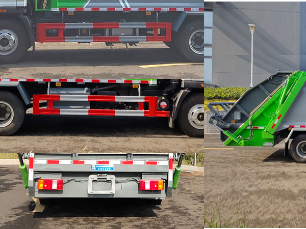 | 1、该车主要专用装置由箱体、压缩系统组成,用于城市生活垃圾的收集与清运。仅采用3650mm的轴距。该车可选装全密封盖装置;选装不同的后部工作装置.选装锁紧装置;选装不同的工作装置时外形长/前悬/轴距/后悬/后伸(mm)对应关系为:①选装全密封斗装置或摆臂装置时: 7450=1175+3650+2370+255,7555=1280+3650+2370+255;②选装三角斗或翻桶装置时: 7595=1175+3650+2370+400,7700=1280+3650+2370+400;当整备质量为6900kg时,对应的载质量为:4170kg(2人),4105kg(3人);当整备质量为7200kg时,对应的载质量为:3870(2人),3805(3人);2、侧防护材料采用Q235,螺栓加焊接方式连接;后防护由专用装置替代,下边缘离地高:450mm。3、ABS系统控制器型号/生产企业对应关系为:CM3XL-4S/3M(4SF)/广州瑞立科密汽车电子股份有限公司;XH-KQ4S3M-E01/广州市西合汽车电子装备有限公司。仅采用的发动机型号与油耗值(L/100km)对应关系: WP2.3NQ130E61/18.19, WP3NQ160E61/18.18, WP4.1NQ190E61/19.58;4、可选装直接供电式ETC车载装置。后部选装工作灯,仅在夜间驻车状态下起照明作用,行驶过程中不可点亮。选装箱体外观。 |