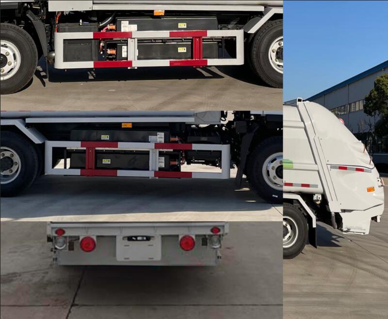 | 1.该车通过垃圾箱,填料器等装置,达到垃圾装载压缩卸料的作业功能;侧防护材料为Q235,采用螺栓连接;后部工作装置代替后下部防护装置,最大离地高度355mm;2.仅选用底盘3300mm轴距;3.选装箱体边板造型;4.选装不同的后部工作装置,由选装引起整备质量及整车尺寸参数发生变化,因选装带来的后伸量可为260,355,此时对应的后悬/整车长度为1985/6720,2105/6935;5.电池种类/生产企业:磷酸铁锂电池/宁德时代新能源科技股份有限公司;驱动电机额定功率/峰值功率:75kW/135kW;6.该车装ABS;ABS型号/生产厂家:CM4XL-4S/4M/广州瑞立科密汽车电子股份有限公司;7.该车型可选装ETC车载装置. |