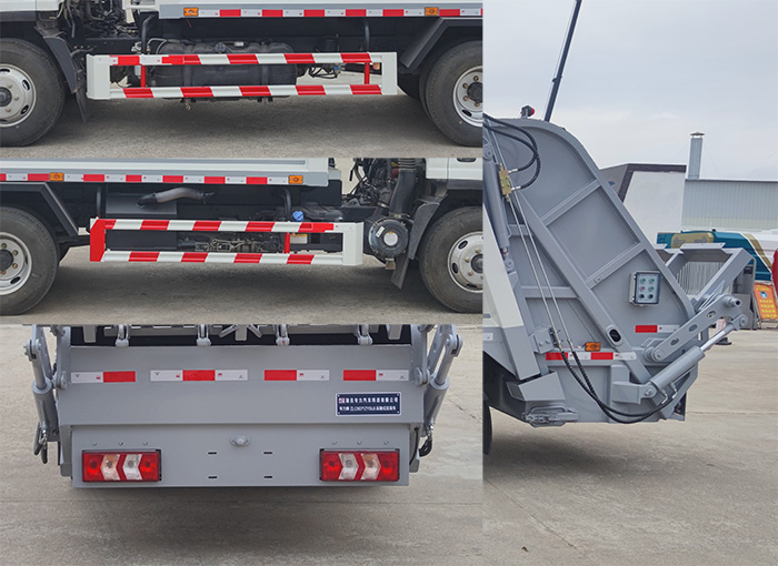 1、该车专用装置为箱体及压缩机构,用于城市环卫垃圾压缩及运输.2、侧防护材料Q235,螺栓连接,后部防护由专用装置代替,下边缘离地高420mm。3、整车长/后伸的对应关系为(mm):6920/400,6800/280,ABS型号/企业:ABS-E 4S/4M/采埃孚商用车系统(青岛)有限公司,CM4XL-4S/4M/广州瑞立科密汽车电子股份有限公司,ABS 8/东科克诺尔商用车制动系统(十堰)有限公司;该车可选装ETC车载装置,发动机/油耗值L/100km对应关系分别:YCY30165-60/14.69,YCY24140-60/14.54,YCY24120-60/14.54。4、选装铝合金钢圈,选装车辆尾部翻转机构样式。 |