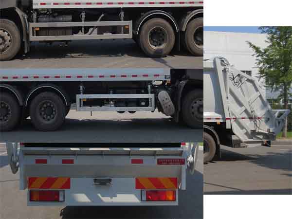 ABS型号:3631010-C2000/ABS 8/4460046450/J ABS;ABS生产企业:东科克诺尔商用车制动系统(十堰)有限公司/东科克诺尔商用车制动系统(十堰)有限公司/威伯科汽车控制系统(中国)有限公司/焦作博瑞克控制技术有限公司;安装有具有卫星定位功能的行驶记录仪;发动机净功率值:208kw;252kw;选装描述:仅选用D6.7NS6B290,DDi75E350-60发动机;仅选用4350+1350mm轴距;随底盘选装驾驶室、后视镜、仅高度不同驾驶室;选装不带后提升机构,车总长为9950mm,整备质量为14500kg,额定载质量为10370kg;选装料斗式提升机构,后伸为420mm,车总长为10370mm,整备质量为15150kg,额定载质量为9720kg;该车型可选装ETC车载装置;发动机/油耗值(L/100km)对应关系为:D6.7NS6B290/31.3,32.0;DDi75E350-60/31.7,31.7;侧后防护情况:侧防护所用材质为铝合金,与上装大箱螺栓连接;车身结构满足后防护安装要求,离地高度为475mm;专用功能及装置:安装厢体、后门及液压系统,主要用于生活垃圾收集、运输;后伸尺寸:560mm; |