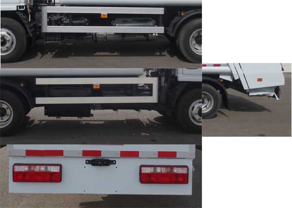 1.选装翻转架式提升机构后伸量为400mm,车总长为6560mm, 额定载质量为1595kg,整备质量为5635kg。2.选装料斗式提升机构后伸量为300mm,车总长为6460mm,额定载质量为1635kg,整备质量为5595kg。3.侧防护装置所用材料为铝合金,与底盘纵梁螺栓连接;车身结构满足后防护的安装要求,离地高度为445mm。4.ABS型号/厂家:ABS/ASR-12V-4S/4M/襄阳东风隆诚机械有限责任公司。5.仅选用3308mm轴距底盘。6.本车安装推板、厢体及后门,主要用于储存、装卸及运输垃圾。7、随底盘选装驾驶室。