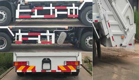 | 该车装有车厢、装载箱总成、选装后上料机构,用于收集、处理和转运垃圾作业.侧防护装置材料:Q235,连接方式:与车箱底架焊接,与大梁螺栓连接;专用装置干涉无法安装后防护装置,离地高450mm.ABS型号/生产厂家:3631010-C2000/东科克诺尔商用车制动系统(十堰)有限公司,ABS 8/东科克诺尔商用车制动系统(十堰)有限公司, 4460046450/采埃孚商用车系统(青岛)有限公司,J ABS/焦作博瑞克控制技术有限公司.仅采用的发动机型号及油耗值(L/100km)对应关系:DDi50E190-60/23.9,D4.5NS6B190/24.4,D6.7NS6B230/23.7,B6.2NS6B210/23.8.安装带卫星定位功能的行驶记录仪.仅采用底盘4500mm轴距.该车有4种配置:A(基本型,无上料机构),B(选装翻桶机构),C(选装斗盖合一机构),D(选装三合一翻桶机构).配置A时车辆长8710mm,整备质量12380kg,额定载质量5490kg或5425kg;配置B时车辆长9155mm(含后伸量445mm),整备质量12690kg,额定载质量5180kg或5115kg;配置C时车辆长9050mm(含后伸量340mm),整备质量13250kg,额定载质量4620kg或4555kg;配置D时车辆长9050mm(含后伸量340mm),整备质量12690kg,额定载质量5180kg或5115kg.该车右侧可选装大污水箱.随底盘选装高度不同的驾驶室;选装前雾灯;选装驾驶室顶部装饰灯;选装驾驶室前面罩;选装前保险杠及前部灯具,选装前下视镜,选装与车身颜色相同的前保险杠,选装不同结构的车门裙板,选装无车门裙板,选装驾驶室卧铺侧窗装饰板.选装后视镜;选装后部灯具;驾驶室前脸扰流罩为选装件;选装踏步结构.选装自动变速箱时仅选装D6.7NS6B230发动机.装备D4.5NS6B220发动机时仅选用8JS变速器.该车可选装车载ETC装置. |