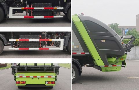 | 该车选用3360mm底盘轴距,该车通过垃圾箱,上料机构,压缩机构,液压电气等装置,达到垃圾收集、压缩、卸料的作业功能;该车有3种配置:A(基本型),B(选装翻桶装置),C(选装翻斗装置) ,配置A时,整备质量5865kg,额定载质量2500kg;配置B时,整备质量6060kg,额定载质量2305kg;配置C时,整备质量6130kg,额定载质量2235kg;配置A时,整车长6670mm,后悬2175mm;配置B时,整车长7070mm,后悬2175mm,后伸400mm;配置C时,整车长6790mm,后悬2175mm,后伸120mm;侧防护装置材料为Q235A,连接方式为螺栓连接;后防护装置由工作装置替代,工作装置离地高度为400mm;该车型可选装ETC车载装置;动力蓄电池种类:磷酸铁锂蓄电池,生产企业:深圳市比亚迪锂电池有限公司.驱动电机类型:永磁同步电机,额定功率95KW,峰值功率160KW;生产企业:精进电动科技股份有限公司;随底盘装ABS,.ABS系统生产企业:广州瑞立科密汽车电子股份有限公司,ABS系统型号:CM4XL-4S/4M.可选装凸轮机构外观,铸件摇臂,后填装器盖外观,上装前顶部无吊耳外观. |
