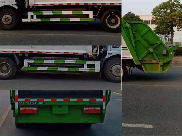 | 1.防护材料:Q235碳钢,连接方式:左右侧面防护采用焊接连接在副梁上,后部防护由专用装置代替:外形长方体,长卓碜高(mm):2140?80?0,离地面高度380mm;2.该车装备有填装器、垃圾箱、翻转机构、推铲、液压系统等,用于城镇居民区、社区等区域的桶装、袋装和散装生活垃圾的收集和转运等作用;3.ABS型号/生产厂家:CM4XL-4S/4M/广州瑞立科密汽车电子股份有限公司;4.储能装置种类/生产企业:磷酸铁锂蓄电池/中航锂电科技有限公司;5.驱动电机型号为:TZ290XSZ,电机额定功率:80kW,电机峰值功率:145kW;6.可选装后摆臂装置和垃圾斗装置,选装侧部及后部结构样式;选装驾驶室外观7.后伸307mm,选装ETC装置 |