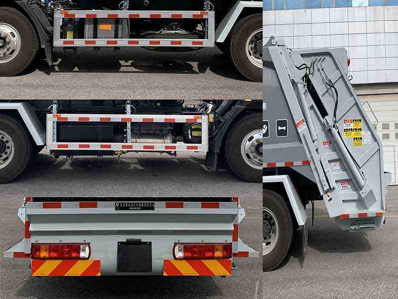 | 仅用3800mm轴距;该车选装3种配置,配置A型挂桶式提升机构后伸量380mm,车总长7750mm,额定载质量4400kg,整备质量9520kg;配置B型簸箕式提升机构后伸量395mm,车总长7765mm,额定载质量4400kg,整备质量9520kg;配置C型无后盖,车辆尺寸质量与基础车型相同,质量变化在误差内忽略不计;侧防护装置材质为铝合金,连接方式:螺栓连接;后防护装置由专用作业装置代替,离地高度为470mm;ABS系统型号/生产企业:ABS-E/威伯科汽车控制系统(中国)有限公司,ABS/ASR-24V-4S/4M/东科克诺尔商用车制动系统(十堰)有限公司;车辆装有垃圾箱体、填装器、后上料装置,用以收集、处理、转运垃圾作业;安装具有卫星定位功能的行驶记录仪;随底盘选装驾驶室外观;该车型可选装ETC车载装置.发动机F4.5NS6B190对应油耗值为23.43L/100km. |