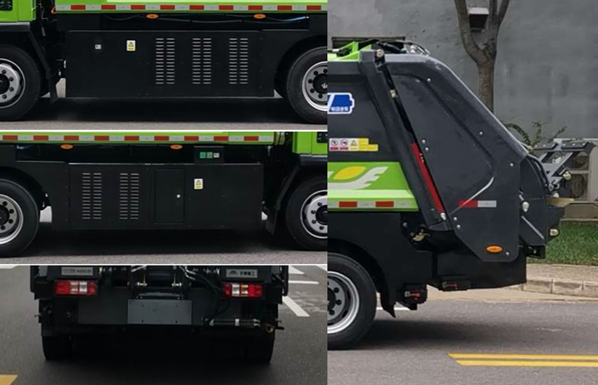 | 1.储能装置种类/生产企业:磷酸铁锂蓄电池/湖北亿纬动力有限公司(单体),郑州深澜动力科技有限公司(总成)。2.可在全国销售。3.侧防护装置由车身结构替代;后防护装置由专用装置替代,专用装置离地高度为480mm。4.该车有两种配置,分别为挂桶式上料机构(A)、簸箕式上料机构(B);配置/整车长度(mm)/后悬(mm)/后伸(mm)/车高(mm)/整备质量(kg)对应关系分别为:A/7015/2150/215/2635/7950;B/6830/2025/155/2595/8050。5.随驾驶室选装不同外观的后视镜,选装其他型式上料机构,不同型式填装器护罩,安全撑杆,其他型式橡胶垫,不同型式箱体,阀门护罩,其他型式液压油箱,其他型式监控探头,其他型式污水箱,其他型式污水槽,其他型式膨胀水箱,其他型式排污口,选装一键排污,360环视,其他型式污水箱端盖。6.ABS型号:ABS-E 4S/4M ,生产厂家:采埃孚商用车系统(青岛)有限公司。7.该车装有箱体、填装器、后上料装置,用于垃圾自行压实装入、转运和卸料。8.准乘人数(个)/整备质量(kg)/额定载质量(kg)对应关系:2/7950/2410,2/8050/2310,3/7950/2345,3/8050/2245。9.该车可选装ETC。10.随底盘选装限速装置,限速80km/h。 |