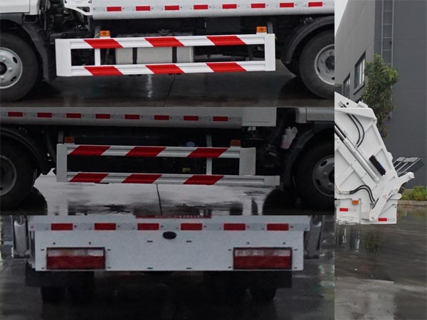 该车型主要用于各类垃圾清理及运输,主要装置为压缩厢体及压缩专用装置.该车可选装后部全密封斗装置、翻桶机构、三角斗装置.选装后部工作装置时外形长/前悬/后悬/轴距/后伸对应关系为(mm):①全密封斗装置:6500/1075(1100)/2040(2015)/3365/20;②翻桶机构:6820/1075(1100)/2040(2015)/3365/340;③三角斗装置:6930/1075(1100)/2040(2015)/3365/450.侧防护材料为Q235,连接方式为连接支架固焊在副车架大梁上.因后部结构需要后防护专用装置代替,离地高为420(mm).选装前面罩,前保险杠,前组合灯具.ABS系统型号/厂家为VIE ABS-Ⅱ/浙江万安科技股份有限公司,选装ABS系统型号/厂家:CM4XL-4S/4M/广州瑞立科密汽车电子股份有限公司;采用3365(mm)轴距底盘.发动机/油耗申报值对应关系为:D25TCIF1/15.6.选装ETC车载装置. |