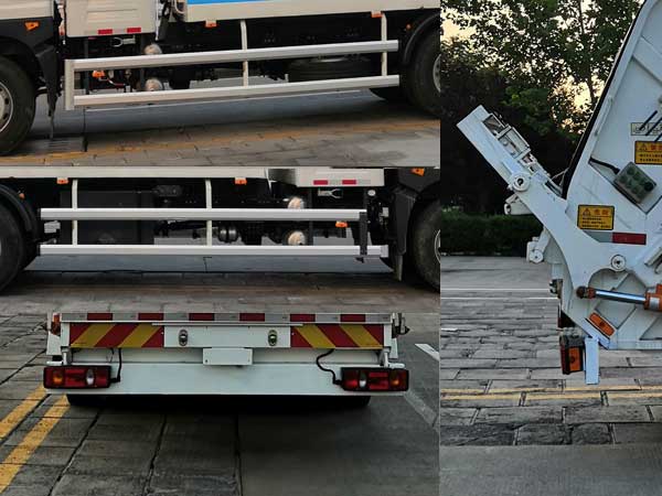 1、电池种类/生产企业: 磷酸铁锂电池/宁德时代新能源科技股份有限公司;2、侧防护装置所用材料材质为铝合金,后下部防护装置所用材料材质为Q235,侧防护装置连接方式为螺栓连接,该车后部车身作为后下部防护装置,最大离地高度470mm;3、随底盘,ABS型号/生产企业: CM4XL-4S/4M/广州瑞立科密汽车电子股份有限公司;4、该车仅选用5300mm轴距;5、安装具有卫星定位功能的行驶记录仪;6、该车后伸为385mm;7、选装翻斗装置,选装翻斗装置时后伸为300mm;8、选装不安装后视摄像头;9、随底盘选装电池罩;选装遮阳板;选装前保险杠样式;10、选装翻桶装置结构;11、该车专用装置有垃圾箱、液压机构等,用于垃圾的收集、装卸;12、该车型可选装ETC车载装置.