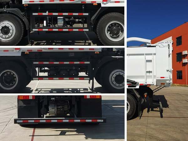 | 1.该车装有液压举升机构和箱体专用装置,用于垃圾转运,自卸方式为后卸;2.储能装置单体种类/单体生产企业/总成生产企业:磷酸铁锂蓄电池/宁德时代新能源科技股份有限公司/宁德时代新能源科技股份有限公司;3.左右侧面防护装置材料为Q235与铝合金组合,与车辆采用螺栓连接;后下部防护装置材料为Q235,与车辆采用螺栓连接,截面尺寸为:80?20(mm),离地高度为:320(mm);4.配装厢体内尺寸6000时整车长度为10120(mm),后悬为2055(mm),配装厢体内尺寸5800时整车长度为9920(mm),后悬为1855(mm),配装厢体内尺寸5600时整车长度为9720(mm),后悬为1655(mm);5.ABS型号/生产企业:ABS-E 6S/6M/采埃孚商用车系统(青岛)有限公司;6.安装具有卫星定位功能的行驶记录仪;7.该车型可选装ETC车载装置;8.选装不同外观车厢,选装不同外观环保折叠篷布或环保盖;9.该产品销售时,可按国家有关规定采用车电分离方式销售;选装后部标识外观 |