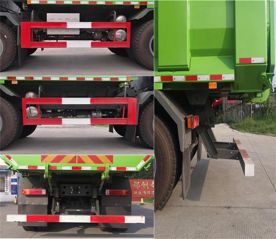 | 1.该车装备有液压举升机构,用于运输垃圾并实现垃圾依靠自身重能自行卸下.倾卸方式:后倾自卸;2.该车可随底盘选装ETC车载装置、驾驶室、翼子板、侧门观察窗、前面罩、不同外形电池罩及换电机构.选装不同的货箱结构(含侧板加强筋)、车厢顶部密闭样式和密闭机构的摇臂或轨道样式,选装后门样式,选装护轮罩样式.该车安装带卫星定位功能的行驶记录仪;3.车长(mm)/轴距(mm)/货箱长(mm)/后悬(mm)/离去角(?对应关系为:10045/1800+3525+1350/5800/1870/17;9845/1800+3525+1350/5600/1670/19;9545/1800+3225+1350/5600/1670/19;4.防护装置的材料为Q235,侧面防护装置的连接方式为螺栓连接,后下部防护装置的连接方式为螺栓连接+焊接.后下部防护装置的截面尺寸为120mm?20mm,离地高度为480mm;5.ABS型号/生产企业:4460046300/威伯科(上海)管理有限公司;6.电池种类/生产企业/单体型号:磷酸铁锂蓄电池/宁德时代新能源科技股份有限公司/CB230;7.该车仅选用TZ388XSWDM2804驱动电机,驱动电机类型/型号/功率(额定/峰值)kW/生产企业:永磁同步电机/TZ388XSWDM2804/(250/360)/潍柴新能源科技有限公司;8.该产品销售时,可按国家有关规定采用车电分离方式销售. |