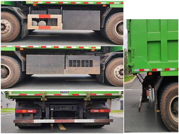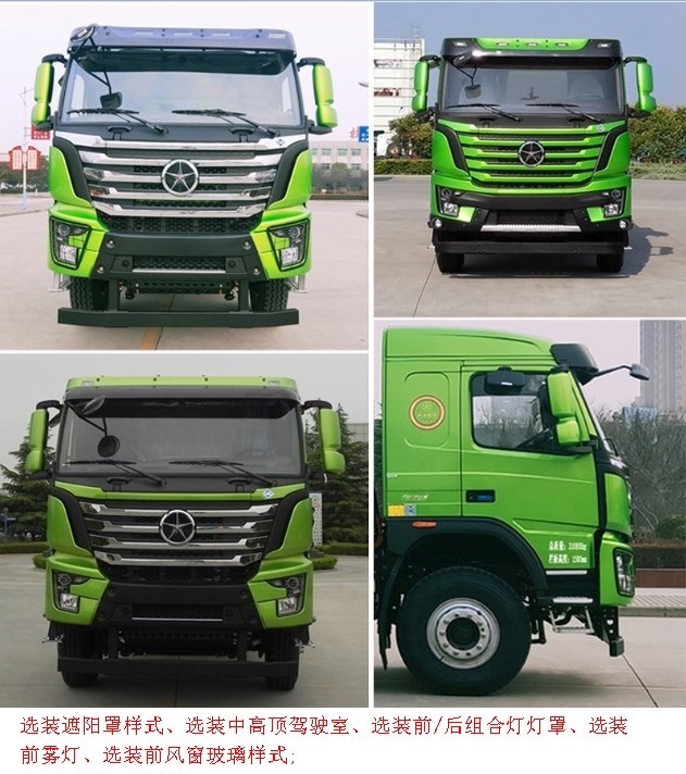 该车自卸方式为后卸式,选用轴距1800+3800+1400.1.随底盘选装遮阳罩样式、选装中高顶驾驶室、选装前/后组合灯灯罩、选装前雾灯、选装前风窗玻璃样式;选装不同结构和外观的货箱、摇臂和不同结构的环保盖,选装引起的整备质量变化小于3%,可忽略不计;2.防护材料:Q235,与车辆连接方式均为焊接+螺栓连接.后防护断面尺寸:120mm?5mm,离地高度435mm;3.ABS型号/生产厂:VIE ABS-Ⅱ/浙江万安科技股份有限公司;4.电池种类/生产企业/型号:锰酸锂蓄电池/天津荣盛盟固利新能源科技有限公司/储能装置单体型号:SPIM11245181-48,成箱后的储能装置型号:MGL48C06Y;5.驱动电机类型/型号/额定功率/峰值功率/生产企业:永磁同步电机/TZ400XSTPG45/200kW/360kW/特百佳动力科技有限公司;6.燃料电池类型/生产厂家:车用质子交换膜燃料电池发动机/洛阳骥翀氢能科技有限公司;7.装有卫星定位功能的行驶记录仪;8.可选装采用直接供电方式的ETC车载装置. |