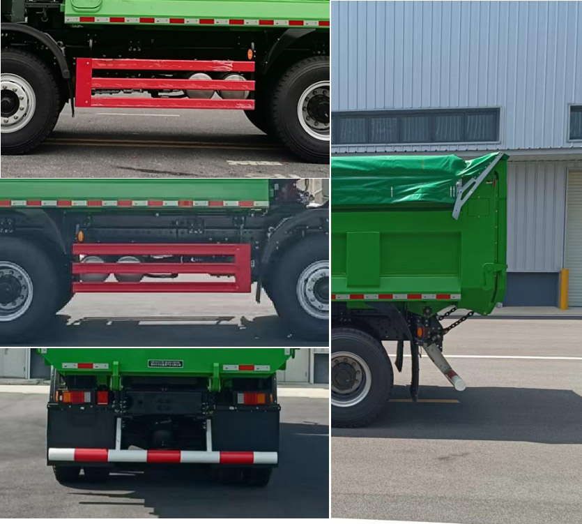 | 1.该车装备有液压举升机构,用于运输垃圾并实现垃圾依靠自身重能自行卸下;自卸方式为后卸式;2.随底盘选装平顶驾驶室及不同外观电池框;可不装前雾灯;选装不同的货箱结构,可不装货箱篷布;3.侧面防护材质为板材冷轧钢板B-1.0/Q195,结构为三根横梁,侧面防护装置为螺栓连接;后下部防护材质为Q235B的钢管,断面尺寸为φ120mm,离地高度为420mm,后部防护装置为螺栓连接;4.驱动电机型号/生产企业:TZ460XS-LKM2401/苏州绿控传动科技股份有限公司,额定功率270kW,峰值功率405kW;5.安装EBS,EBS型号:CM-EBS;EBS生产企业:广州瑞立科密汽车电子股份有限公司;6.储能装置种类:磷酸铁锂动力蓄电池;储能装置生产企业:宁德时代新能源科技股份有限公司;7.安装有具有卫星定位功能的行驶记录仪;8.该车型可选装ETC车载装置;9.该产品销售时,可按国家有关规定采用车电分离方式销售.10.整车长度与前后悬、轴距、货箱尺寸的对应关系:9600=1500+2000+3200+1400+1500对应5400货箱,9800=1500+2000+3200+1400+1700对应5600货箱,9800=1500+2000+3400+1400+1500对应5800货箱,9850=1500+2000+3200+1400+1750对应5800货箱,10000=1500+2000+3400+1400+1700对应5800货箱. |