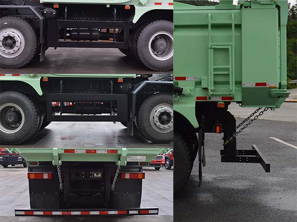 | 1、该车装有液压举升机构,自卸方式为后卸。2、可选装不同驾驶室外观、轮眉,选装不同电池罩,取消或安装电池下仓体,可选装不同外观车厢,可选装不同外观环保折叠篷布或环保盖,可选装不同外观翻转结构,可选装三四轴防飞溅装置,可选装驾驶室车顶装饰件,可选装不同外观驾驶室面罩,可选装后视镜。3、整车长度(mm)/前悬(mm)/后悬(mm)对应关系:9795/1500/1945,9900/1500/2050,9995/1500/2145。4、侧防护装置材料Q345,与车辆采用螺栓连接;后防护装置材料Q345,截面尺寸为120?0(mm),离地高度460mm,与车辆采用螺栓连接。5、该车安装具有卫星定位功能的行驶记录仪。6、储能装置种类/生产企业:磷酸铁锂蓄电池/宁德时代新能源科技股份有限公司。7、驱动电机额定功率为310kW,峰值功率为400kW。8、防抱死制动系统型号/厂家:EBS3/采埃孚商用车系统(青岛)有限公司;EBS 5/克诺尔商用车系统企业管理(上海)有限公司;ABS 8/克诺尔商用车系统企业管理(上海)有限公司。9、该车型可选装直接供电的ETC车载装置。10、该产品销售时,可按国家有关规定采用车电分离方式销售。11、专用功能:用于垃圾转运;专用装置为厢体,液压油缸等. |