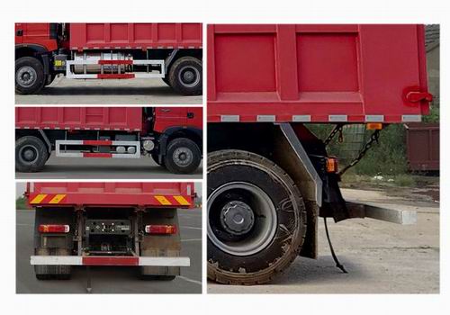 | ABS型号:4460046300;ABS生产企业:威伯科(上海)管理有限公司;安装有具有卫星定位功能的行驶记录仪;发动机净功率值:257kW,279kW,301kW,294kW,324kW,282kW,296kW;车长与前后悬参数一一对应;选装描述:选装普通驾驶室,外形尺寸高为3450mm;选装高顶驾驶室,外形尺寸高为3800mm。可不选装遮阳罩,可不选装后风窗,选装保险杠,选装后视镜,选装侧门观察窗。选装货箱栏板外观,选装不同货箱结构。选装带折叠式篷布环保盖货厢和带普通环保盖货厢。该车型可选装ETC车载装置。;所用材料材质、连接方式以及后部防护装置的主要尺寸参数(断面尺寸和离地高度):侧面防护装置所用材料材质为Q235A,连接方式为螺栓连接;后部防护装置所用材料材质为Q235B,连接方式为螺栓连接,断面尺寸为120mm?20mm,离地高度为480mm。;自卸方式为后卸式; |