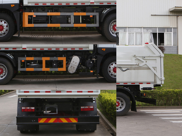 自卸方式为后卸;车厢顶部封闭,不可开启。该车安装具有卫星定位功能的行驶记录仪,仅选装4500mm轴距;侧防护装置的材料材质:Q235B,后部防护装置的材料材质:Q345B,连接方式均为螺栓连接;后部防护装置的断面尺寸(宽赘?mm:60?40,后部防护装置的离地高度440mm。可选装铝合金材质侧防护。随底盘选装前格栅;随底盘装B6.2NS6B210、CY4SK761、D4.0NS6B195、D4.5NS6B220、YCS04200-68、B6.2NS6B230型发动机,对应油耗值(L/100km)分别为26.3,26.8,26.6,26.6,26.4,26.1。ABS型号/生产厂家:J ABS/焦作博瑞克控制技术有限公司。该车通过垃圾箱,箱体举升机构等装置,达到垃圾转运及举升卸料的作业功能。 |