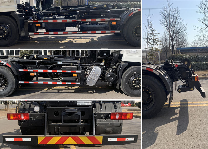 1、ABS型号:3631010-C2000,ABS 8,ABS-E 4S/4M,J ABS;ABS生产企业:东科克诺尔商用车制动系统(十堰)有限公司,东科克诺尔商用车制动系统(十堰)有限公司,采埃孚商用车系统(青岛)有限公司,焦作博瑞克控制技术有限公司;2、选装描述:随底盘选装高度不同的驾驶室;选装驾驶室顶部装饰灯;选装驾驶室前面罩;选装前保险杠及前部灯具,选装后视镜;选装上车踏板型式;驾驶室前脸扰流罩为选装件;驾驶室卧铺侧窗选装装饰板;前雾灯为选装件.随底盘选装不同结构的车门裙板,选装前下视镜.该车可选装ETC车载装置.随底盘选装限速装置,限速89km/h;3、发动机D6.7NS6B230,B6.2NS6B210,B6.2NS6B230,DDi50E190-60,D4.5NS6B190,DDi50E220-60,D4.0NS6B185,D4.0NS6B195,D6.7NS6B260,D4.5NS6B220,DDi47E210-60油耗值(L/100km)分别为:23.7,23.8,23.8,23.9,24.4,25.1,25.2,26,23.8,26.81,26.57;4、侧后防护情况:侧防护装置材质为Q235B,选装侧防护造型,连接方式为螺栓连接;后防护装置材质为Q345B,后防护断面尺寸:180?0(mm),离地高420(mm),连接方式为螺栓连接;5、专用功能及装置:用于环卫部门转运垃圾箱,专用装置为拉臂式自装卸装置;6、该车加装具有卫星定位功能的行驶记录仪;7、后部安装工作照明灯,仅在作业时使用.8、随底盘扩展后视镜;9、选装后部工作照明灯;10、选装备胎架位置;11、选装液压油缸、多路阀位置。 |
