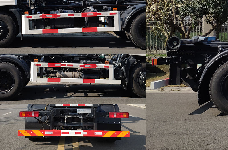1、该车主要专用装置有液压拉臂,用于将装载垃圾的专用垃圾箱托吊到本车上进行转运作业,实现垃圾箱托吊转运和卸放功能;2、侧防护材质为Q235,采用螺栓连接,后防护材质为Q235,采用螺栓连接,截面宽x高为60x120mm,离地高为470mm;3、安装具有卫星定位功能的行驶记录仪;该车可选装ETC车载装置;4、随底盘选装驾驶室前面罩,选装侧窗玻璃,选装驾驶室顶部中间三个装饰灯选装前雾灯;选装驾驶室前脸扰流罩;随底盘选装燃油箱安装位置;选装上装液压油箱安装位置;选装拉臂式自装卸装置总成外观样式及型号为:LBH836;选装上装分体式液压控制阀及电控箱安装位置;选装车架尾部横梁后横面不带铆钉连接;5、ABS型号/生产厂家:3631010-C2000/东科克诺尔商用车制动系统(十堰)有有限公司,JABS/焦作博瑞克控制技术有限公司;6、发动机型号/最大净攻率(Kw)/油耗申报值(L/100km):D4.0NS6B185/131/24.2;DDi50E220-60/158/24.2;D4.0NS6B195/138/24.2;DDi47E210-60/150/26.57;7、该车仅选用3950mm轴距,外形尺寸长/后悬/整备质量对应关系为:6870mm/1490mm/6260kg,6700mm/1320mm/5800kg. |
