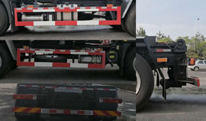 该车通过拉臂装置及液压系统,实现对垃圾的装载及卸料的作业功能;该车仅选装4500mm轴距,侧防护材料为Q235A,与车辆连接方式为螺栓连接;后防护材料为Q235A,与车辆连接方式为焊接,截面尺寸为120x53mm,最大离地高度435mm.选用发动机型号为D6.7NS6B230,对应油耗值(L/100km)为26.8,最大净功率166kw;选用发动机型号为B6.2NS6B230,对应油耗值(L/100km)为26.91,最大净功率依次为166kw。ABS系统型号/生产企业对应关系:ABS-E/威伯科汽车控制系统(中国)有限公司;ABS/ASR-24V-4S/4M/东科克诺尔商用车制动系统(十堰)有限公司;CM4XL-4S/4M/广州瑞立科密汽车电子股份有限公司;3550D-1010/东科克诺尔商用车制动系统(十堰)有限公司。该车安装具有卫星定位功能的行驶记录仪,选装ETC。随底盘选装驾驶室前围。随底盘选装logo和标识。 |