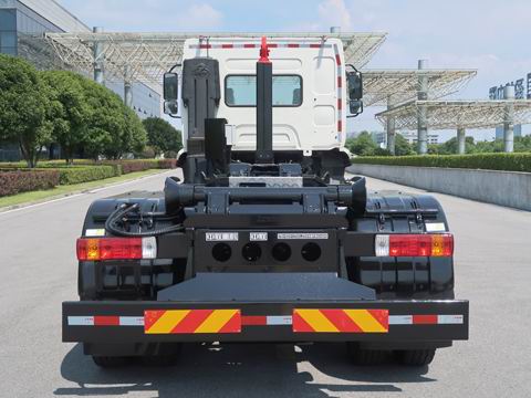 | 该车选用底盘4500+1350mm轴距;专用功能及装置:该车通过拉臂装置及液压系统实现对垃圾的装载及卸料的作业功能,该车仅运输封闭式专用货厢;选装描述:底盘部分:随底盘选装驾驶室及附件,整车高为3150mm或3195mm;上装部分:标配拉臂装置1时,整备质量10750kg,额定载质量14120kg,外观与标配一致;选配拉臂装置2时,整备质量11350kg,额定载质量13520kg;还可选装左侧液压油箱布置位置,尾部快换接头布置位置,尾部拉臂装饰板,选装后挡泥板下部侧标志灯/侧回复反射器外观,选装右侧标牌位置外观,选装后左侧挡泥板上工具箱,选装后视摄像头,选装驾驶室后口外观,对参数变化可忽略不计;防护装置描述:侧面防护装置的材料为铝合金,连接方式为螺栓连接,可选装其局部外观;标配后防护装置材料为Q345A,与车辆连接方式为螺栓连接,断面尺寸为240?5mm,离地高度为467mm,整车长8530mm,对应后悬1235mm;选装新款后防护装置材料为Q235A,与车辆连接方式为螺栓连接,断面尺寸为150?00mm,离地高度为475mm,整车长8565mm,对应后悬1270mm;该车安装具有卫星定位功能的行驶记录仪;随底盘装 YCS06270-60发动机,对应的油耗值(L/100km)为32.13;随底盘装有ABS,ABS型号/企业:ABS-E 4S/4M/威伯科汽车控制系统(中国)有限公司. |