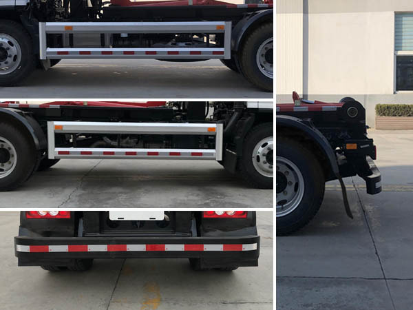| 车辆主要用于城乡垃圾的收集、中转和运输,专用装置为装卸功能的拉臂钩.仅选用3800mm轴距.随底盘选装限速装置,最高车速80km/h.选装前围及灯具.选装LOGO标识.选装前部欧马可中英文标识.选装后封板.选装新式车辆外部标识牌.ABS系统控制器型号/生产企业:ABS-E/威伯科汽车控制系统(中国)有限公司,ABS-VI稥/广州瑞立科密汽车电子股份有限公司.车辆侧面防护装置的材料材质为铝合金,连接方式为螺栓连接.后下部防护装置的材料材质为Q235钢,连接方式为焊接,断面尺寸(mm)为80?60,最大离地高度为415mm. |