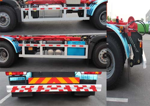 | 具有拉臂总成工作装置,用于垃圾运输,侧防材质为铝型材,采用螺栓螺母连接,后防材质Q235,断面尺寸为150?00mm的矩形方管,用螺栓螺母与大梁两侧固定,离地高度450mm。仅选用4300+1350mm轴距,选装MC0.7.27-60,MC07.31-60,MC07.34-60发动机,油耗值(L/100km)均为32.1.ABS系统生产厂家:威伯科(上海)管理有限公司,型号:4460046300。选装限速装置时,最高车速为80或89km/h.安装具有卫星定位功能的行驶记录仪。选装拉臂新上装,高3035mm。选装无天线驾驶室 |