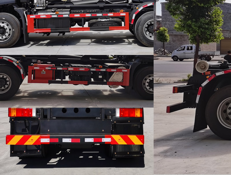 | 1、该车专用装置为勾臂,用于垃圾收集清运.仅采用4350+1350(mm)轴距底盘改装。2、侧面防护及后防护装置材料均采用Q235A材质,侧面防护连接方式为螺栓连接,后防护连接方式为焊接连接,后部防护装置断面尺寸(宽赘?60?20(mm),离地高500mm。4、安装(带卫星定位功能的)行驶记录仪;ABS型号/生产厂家:3631010-C2000/东科克诺尔商用车制动系统(十堰)有限公司,ABS 8/东科克诺尔商用车制动系统(十堰)有限公司,4460046450/采埃孚商用车系统(青岛)有限公司。5、发动机/油耗值(L/100km)对应关系为:D6.7NS6B320/30.22,DDi75E340-60/28.71。6、选装直接供电式ETC车载装置,选装限速装置,限速89km/h;选装底盘附件储气筒尿素罐安装位置;随底盘选装驾驶室; |