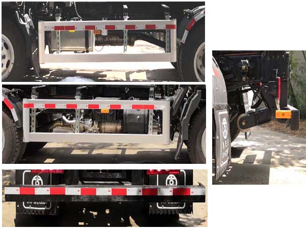 | 1、选装钩臂,整备质量为4950kg,载质量为6850kg。2、车辆左右侧防护材质为铝合金型材,侧防护与防护支撑采用螺栓连接。车辆后下部防护材质为Q235B,采用焊接和螺栓连接方式。后下部防护断面尺寸为:120mm?0mm,离地高度为:470mm。3、该车安装具有卫星定位功能的行驶记录仪。4、ABS系统控制器型号/生产企业:ABS-E/威伯科汽车控制系统(中国)有限公司,ABS-VI稥/广州瑞立科密汽车电子股份有限公司。5、此车采用伸缩臂拉臂钩等垃圾吊装机械改装而成,主要用于城市垃圾集中转运。6、车辆仅选用3360mm轴距底盘。7、车辆仅选用F3.8NS6B156型号发动机,油耗值为20.81L/100km;8.随底盘选装LOGO标识. |