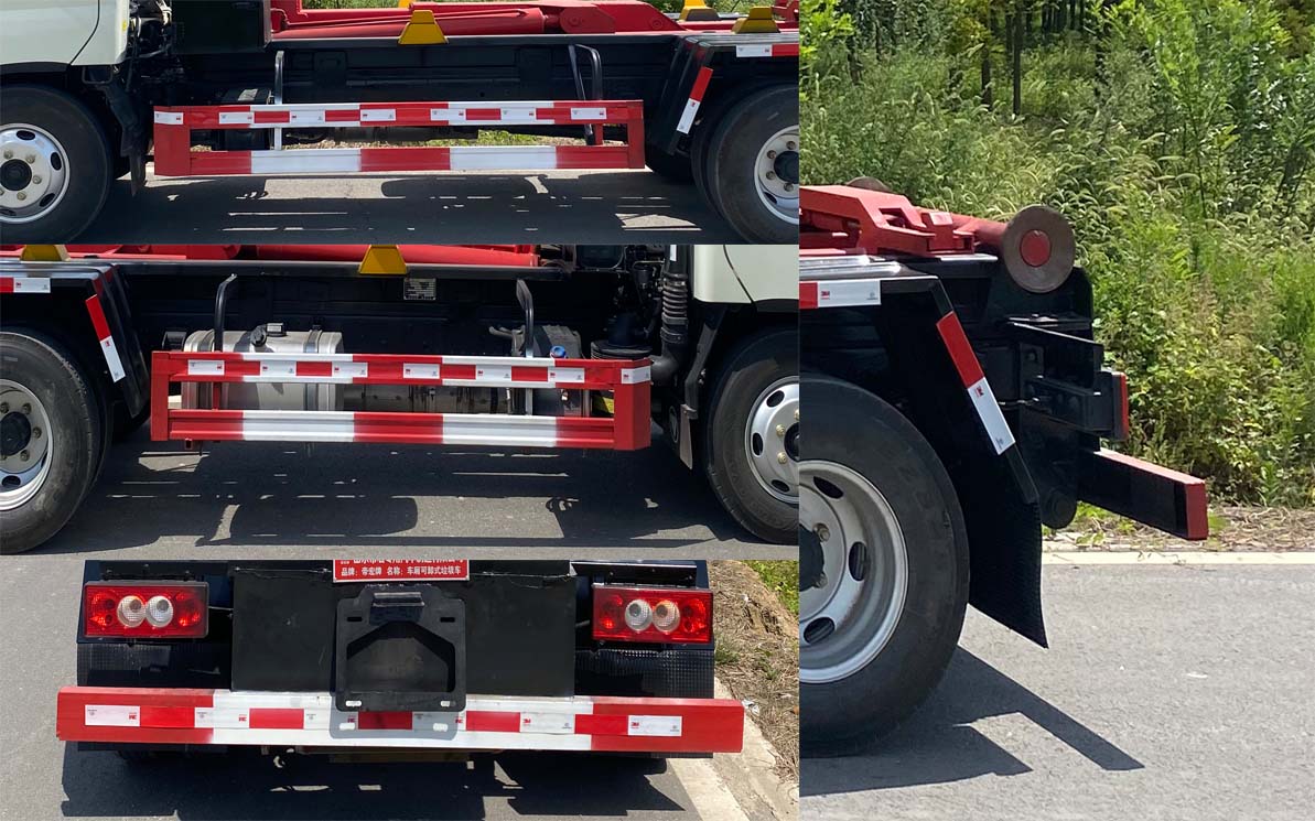 该车用于垃圾的收集清运,主要专用装置为勾臂.侧/后部防装置材料均为Q235,连接方式均为焊接连接;后部防护断面尺寸(mm):120?0,离地高度420mm.仅采用的发动机型号及油耗值(L/100km)对应关系:Q28-130E60/15.11,F2.8NS6B131/15.92,F2.8NS6B150/15.92,Q28-130C60/15.93,Q23-115E60/15.85,Q23-132E60/15.85,Q28-152E60/16.14.该车型可选装直接供电式ETC车载装置.ABS系统型号:ABS-E;生产企业:威伯科汽车控制系统(中国)有限公司.ABS系统型号:ABS-VI.E;生产企业:广州瑞立科密汽车电子股份有限公司.仅采用底盘3360mm轴距改装.选装锁紧机构样式,选装大臂结构,选装后部滚轴结构.随底盘选装驾驶室. |