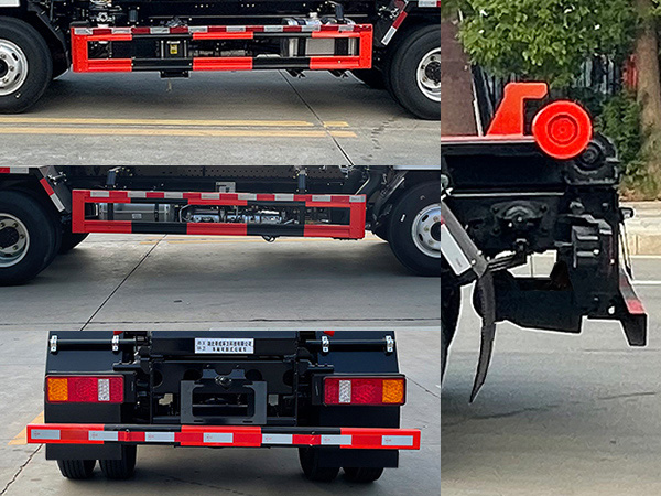 ABS型号:CM4XL-4S/4M;ABS生产企业:广州瑞立科密汽车电子股份有限公司;随底盘选装驾驶室前面罩,外形长/轴距/后悬(mm)对应关系为:5550/3300/1100,5700/3300/1250,5850/3600/1100;选装钩臂结构,选装尾部滚轮结构,选装横向锁紧,选装塑料挡泥板,选装液压油箱安装位置;发动机//油耗值(L/100km):WP2.3NQ130E61/18.4;侧,后防护均采用材料为Q235,连接方式均为焊接加螺栓连接,后部防护断面尺寸(mm):50?00,离地高度440mm;专用功能及装置:主要专用装置为勾臂;用于垃圾的收集清运;该车型可选装直接供电ETC车载装置. |