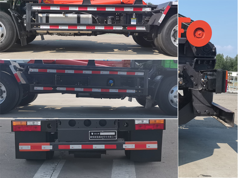 | 该车用于垃圾的收集清运,专用装置为勾臂及液压举升系统;ABS系统生产厂家及型号为:广州瑞立科密汽车电子股份有限公司(型号:CM4XL-4S/4M),东科克诺尔商用车制动系统(十堰)有限公司(型号:ABS/ASR-24V-4S/4M).侧防护材料:Q235,后防护材料;Q235.连接方式:左右侧及后防护均采用螺栓连接;后部防护断面尺寸(mm):100?0,后防护离地高度(mm):440,450,360,370,380,390.发动机/油耗(L/100km)对应关系:WP2.3Q140E62/11.4.发动机最大净功率为:WP2.3Q140E62(99kW),整备质量包含备胎、随车工具、停车楔,不包含箱体重量.该车型可选装直接供电式ETC车载装置.垃圾箱箱体内尺寸(长卓碜高)(mm):3700,3600,3500,3400,3300,3200,3100,3000,2900,2800,2700,2600,2500?000,1900,1800?000,900,800,700.选装钩臂样式。 |