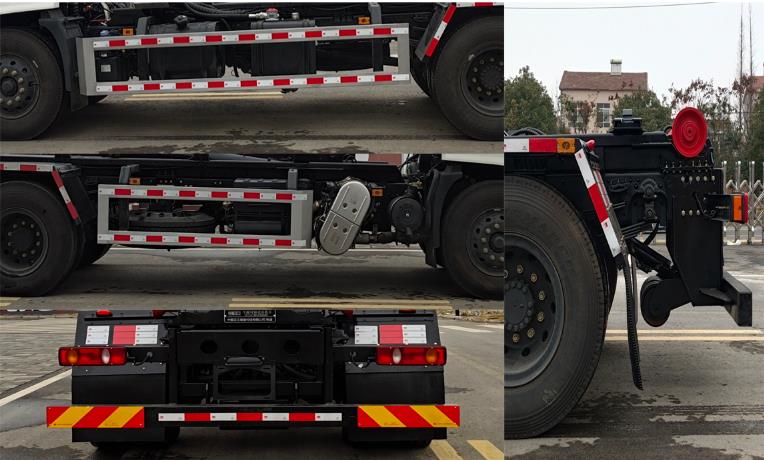1.该车主要用于垃圾收集及清运,主要专用装置为勾臂.选用轴距(mm):4500.整车外形长/前悬/后悬对应关系为(mm):7240/1430/1310,7210/1400/1310,7180/1430/1250,7150/1400/1250,7130/1430/1200,7100/1400/1200.2.侧防护材料为Q235,与车架螺栓连接;后防护材料为Q345,与车架焊接连接,截面尺寸:140?0mm,下边缘离地高430mm.3.随底盘选装高度不同的驾驶室;选装前雾灯;选装驾驶室顶部装饰灯;选装驾驶室前面罩;选装前保险杠及前部灯具,选装驾驶室前脸扰流罩;选装驾驶室卧铺侧窗装饰板.选装不同上装结构,随底盘选装不同底盘布局,选装控制箱,选装液压油箱,选装后部结构.该车可选装ETC车载装置.安装限速装置,限速89km/h;ABS型号/生产厂家:3631010-C2000/东科克诺尔商用车制动系统(十堰)有限公司,ABS 8/东科克诺尔商用车制动系统(十堰)有限公司, 4460046450/威伯科汽车控制系统(中国)有限公司.4.发动机与油耗值(L/100km)对应关系:采用的发动机与油耗值对应关系为(L/100Km):DDi50E190-60/23.9,D4.5NS6B190/24.4,D6.7NS6B230/23.7,B6.2NS6B210/23.8,B6.2NS6B230/23.8. |