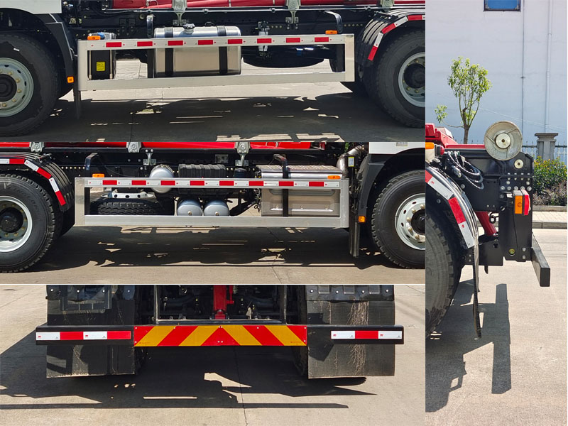 1.该车用于垃圾的收集清运,主要专用装置为勾臂;2.仅采用底盘4375+1400,4575+1400轴距(mm)改装;整车长/前悬/轴距/后悬对应关系(mm):8700/1525/4575+1400/1200,8600/1525/4575+1400/1100,8500/1525/4375+1400/1200,8400/1525/4375+1400/1100;3.侧防护材料为铝合金,连接方式螺栓连接;后防护材料为Q235,连接方式焊接连接,后部防护断面尺寸(mm):120?0,离地高度480mm;4.发动机型号/油耗申报值(L/100km)对应关系为:YCS06270-60/31.22,WP7.270E61/32.37,WP7.300E61/32.37,WP8.320E61/32.18,WP8.350E61/32.18;ABS系统生产厂家及型号分别为:西安正昌电子股份有限公司(ZQFB-V);该车安装带卫星定位功能的行驶记录仪,该车型可选装直接供电式ETC车载装置. |