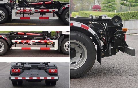 该车选用底盘3800mm轴距;该车通过拉臂装置及液压系统,实现对垃圾的装载及卸料的作业功能;标配拉臂装置时,车高为2885mm;选配拉臂装置时,车高为2605mm;整备质量/额定载质量(kg)对应关系为:4865/6935,4730/7070;侧防护装置材料为Q235A,与车辆连接方式为螺栓连接;后防护装置材料为Q235A,与车辆连接方式为螺栓连接,后部防护装置的断面尺寸为120?0mm,离地高度为470mm;随底盘装D30TCIF1,F3.8NS6B156,D25TCIF1发动机,对应的油耗值(L/100km)为18.42,21.02,21.01;随底盘装有ABS,ABS系统型号:ABS-VI.E;生产企业:广州瑞立科密汽车电子股份有限公司.ABS系统型号:ABS-E;生产企业:威伯科汽车控制系统(中国)有限公司;该车型可选装直接供电式ETC车载装置.还可选装中部支撑座外观. |