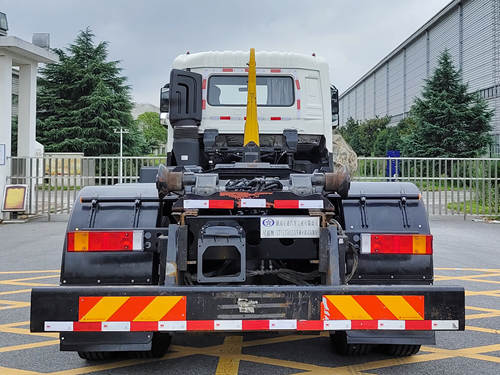 | 该车是在东风二类底盘DFH1250D4(国Ⅵ)的轴距为4350+1350mm基础上加装拉臂上装系统改制而成,是用于收集、转运城市垃圾的专用环卫车辆;车辆侧防护、后防护装置均采用螺栓连接,材质为Q235A,侧防护采用螺栓紧固于副梁上,后防护采用螺栓紧固于车辆尾部;后防护截面高度为240mm,截面宽度尺寸为65mm,离地高度为480mm;驾驶室准乘2人时整备质量为11365kg ,准乘3人时整备质量为11300kg;随底盘选装驾驶室外型;ABS型号/生产厂家:3631010-C2000/东科克诺尔商用车制动系统(十堰)有限公司,ABS 8/东科克诺尔商用车制动系统(十堰)有限公司,4460046450/威伯科汽车控制系统(中国)有限公司;发动机净功率及油耗值为:D6.7NS6B290为208kw,油耗32L/100km;DDi75E350-60为252kw,油耗31.7L/100km;DDi75E300-60为215kw,油耗31.3L/100km;随底盘选装ETC车载装置;安装具有卫星定位系统的行驶记录仪.选装外型样式,选装上装大臂样式. |