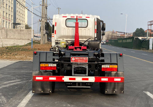 选装燃油箱,电瓶,尿素罐,储气筒等左右安装位置;选装锁紧方式;选装大臂结构;整车长度/轴距的对应关系为:5740/3300,5990/3550.侧后防护采用Q235材质焊接连接,后部防护断面尺寸为120?0mm,后部防护离地高度(mm):490. ABS生产厂家:威伯科汽车控制系统(中国)有限公司,型号:ABS-E4S/4M;浙江万安科技股份有限公司,型号:VIE ABS-II;广州瑞立科密汽车电子股份有限公司,型号:CM4XL-4S/4M.安装具有卫星定位功能的行驶记录仪. 该车型可选装直接供电式ETC车载装置;发动机对应油耗值(L/100km)分别为:D30TCIF1/21.2,D30TCIF2/21.2,D40TCIF1/21.3,D40TCIF2/21.3,D45TCIF1/20.9,D47TCIF1/21.1,YCS04200-68/20.9,D43TCIF1/20.6,YCY30165-60/20.9; 专用装置名称:拉臂机构,主要用于城镇环卫垃圾的收集与转运. |