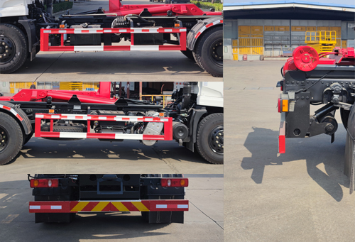 该车主要专用装置为勾臂,用于垃圾清运;选装勾臂样式,选装液压支腿;整车外形长/轴距/后悬对应关系为(mm):6580/3800/1380,6580/3800/1350,6730/3950/1380,6730/3950/1350,7330/4500/1430,7330/4500/1400,7530/4700/1430,7530/4700/1400;仅采用3800mm,3950mm,4500mm,4700mm轴距;侧、后防护均采用Q235材质,侧后防护均采用螺栓连接,后防护截面尺寸(mm)155?0,下边缘离地高为480mm;随底盘选装驾驶室,选装油箱,选装后处理布置,电瓶安装位置;选装空气滤清器外观,选装限速装置,限速89km/h;该车可选装车载ETC装置;安装带有卫星定位功能的行驶记录仪;ABS型号/生产厂家:3631010-C2000/东科克诺尔商用车制动系统(十堰)有限公司,ABS 8/东科克诺尔商用车制动系统(十堰)有限公司, ABS-E 4S/4M/采埃孚商用车系统(青岛)有限公司,J ABS/焦作博瑞克控制技术有限公司;发动机型号与油耗值对应关系:(L/100Km):D4.5NS6B190/24.4,DDi50E190-60/23.9,D6.7NS6B230/23.8,B6.2NS6B210/23.8,B6.2NS6B230/23.8,D4.0NS6B185/25.2,D4.0NS6B195/26.0,D6.7NS6B260/23.8,D4.5NS6B220/26.81,DDi47E210-60/26.57. |