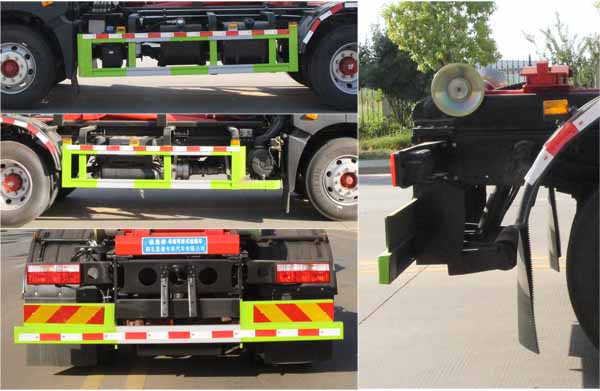 该车主要用于垃圾转运,专用装置为勾臂.侧/后部防护装置材料:Q235碳钢,连接方式均为:螺栓连接;后防护截面尺寸120?0mm,后部防护离地高度(mm):480.ABS系统生产厂家,型号 :焦作博瑞克控制技术有限公司,J ABS;襄阳东风隆诚机械有限责任公司,ABS/ASR-24V-4S/4M.安装具有卫星定位功能的行驶记录仪.发动机型号与油耗值对应关系为(L/100km):B6.2NS6B210/26.1,D4.5NS6B220/26.3,D4.0NS6B195/26.4,YCS04200-68/26.5,CY4SK761/26.3,B6.2NS6B230/26.1,YCY30165-60/23.1.该车可选装直接供电式ETC车载装置.仅采用底盘4700mm,4500mm,3950mm轴距改装.随底盘选装燃油箱,电瓶,尿素罐,储气筒左右安装位置.随底盘选装限速装置,限速89km/h.随底盘选装驾驶室,选装排气管后背. |