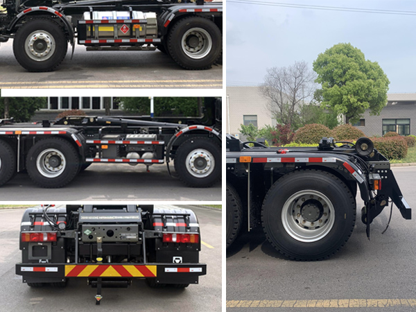 | 该车专用装置为拉臂式自装卸装置,通过液压系统,实现对垃圾的装载及卸料的作业功能.仅选用1800mm+3050mm+1350mm轴距.侧防护材料为Q235B,选装侧防护压型造型,选装铝合金材料,后防护材料为Q345B,均与车辆采用螺栓连接;后防护断面尺寸为180mm?0mm,离地高度为430mm.该车安装具有卫星定位功能的行驶记录仪;随底盘选装驾驶室.ABS系统控制器生产企业/型号为采埃孚商用车系统(青岛)有限公司/4460046300;选装EBS,EBS系统控制器生产企业/型号为采埃孚商用车系统(青岛)有限公司/EBS3.该车型可选装 ETC车载装置.后部装有作业照明灯,该灯用于夜间作业时照明,只能在车辆切换为作业状态时使用,行驶状态不能点亮. |