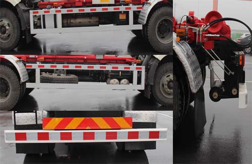该车采用4500mm轴距底盘.侧防材料为铝合金,用螺栓螺母固定于车架左右纵梁上;后部防护装置材料为Q235,连接方式为螺栓连接,断面尺寸为150?00mm,离地高度为480mm.发动机 CA4DK1-22E6,CA4DK1-18E6油耗值(L/100km)均为25.8;选装前围和灯具,选装宽体保险杠,脚踏板.ABS系统生产厂家:长春瑞立科密汽车电子有限公司,型号:CM4XL.装备限速装置,限速89km/h.安装具有卫星定位功能的行驶记录仪,该车主要装备有拉臂总成装置,具有垃圾运输的功能. |