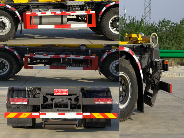 | 该车用于垃圾的收集清运,主要专用装置为勾臂;侧防护材料:Q235B,连接方式为:螺栓连接;后防护材料为Q235B,,连接方式为:焊接,断面尺寸为150?0(mm),离地高度为450mm,安装有具有卫星定位功能的行驶记录仪,选装直接供电ETC车载装置,发动机对应油耗值分别为 (L/100km);WP4.6NQ220E61/32.4,YCK05240-60/32.4,ABS控制方式为4S/4M,ABS型号为CM4XL-4S/4M,生产厂家为广州瑞立科密汽车电子股份有限公司,采用1800+3600(mm)轴距.随底盘选装新前格栅及LOGO,新款保险杠,新造型前雾灯;选装上装结构样式。 |