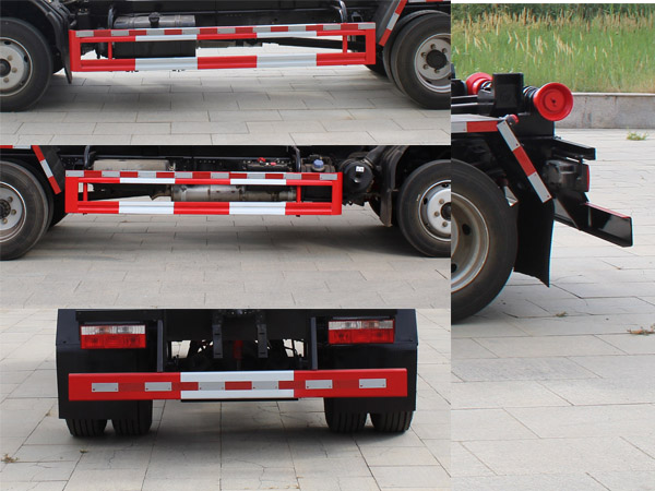 随底盘选装前面罩,前保险杠,前组合灯具,前雾灯。随底盘选择滤清器、储气罐、蓄电池、尿素箱、排气系统、油箱安装位置。侧防护采用Q235A,螺栓连接。后防护采用Q235A,螺栓连接。后防护截面高度尺寸140mm,截面宽度尺寸60mm,下边缘离地高度370mm。采用3800轴距底盘。ABS型号/厂家:ABS型号:ABS/ASR-24V-4S/4M,厂家:襄阳东风隆诚机械有限责任公司。发动机型号/油耗值(L/100km)对应关系:D4.0NS6B170/20.5,D4.0NS6B185/20.4,YCS04190-68/20.3,ZD30D16-6N/20.3,D25TCIF1/20.3,D30TCIF1/20.2,D40TCIF1/20.3,D45TCIF1/20.2,NV30-C6G/20.6,NV30-C6C/20.3,NV30-C6D/20.3,CY4SK161/20.4,CY4SK261/20.1,CY4SK361/20.4,Q28-130E60/20.9。选装限速装置时最高车速为:89km/h。专用装置为勾臂,用于垃圾的收集与运输。该车可选装ETC车载装置。 |